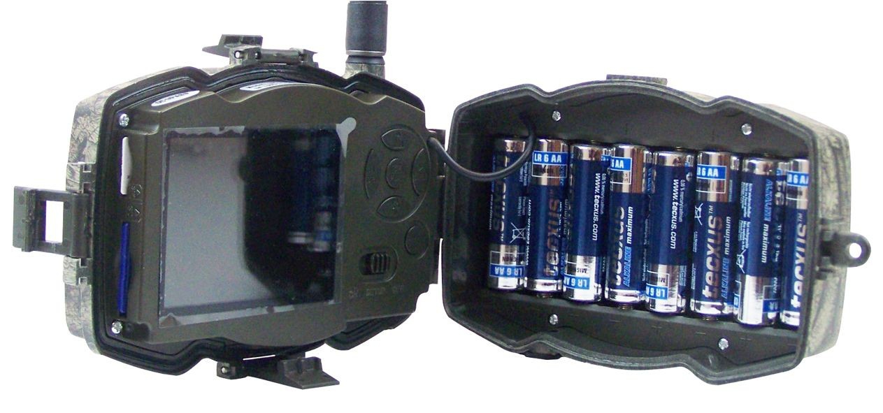 - Fernbedienung vor Ort oder per SMS vom Smartphone aus: 1 Foto bei MMS oder email-Versand bzw. bis 6 Fotos wenn MMS- und email-Versand ausgeschaltet ist und die Fotos nur auf einer SD-Karte aufgezeichnet werden sollen