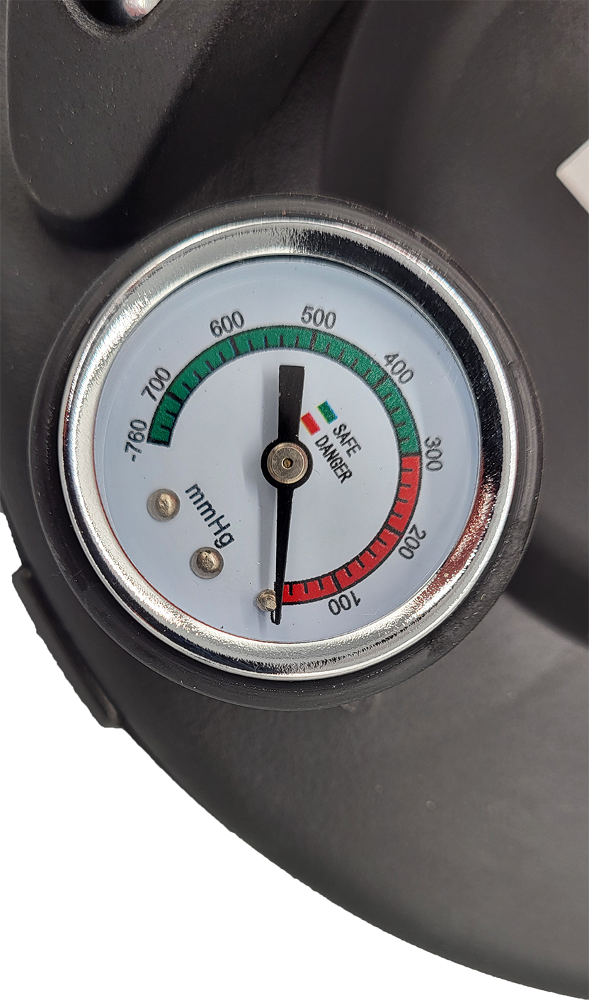 - Mit Manometer und automatischer Nachsaugung, hält das Vakuum!