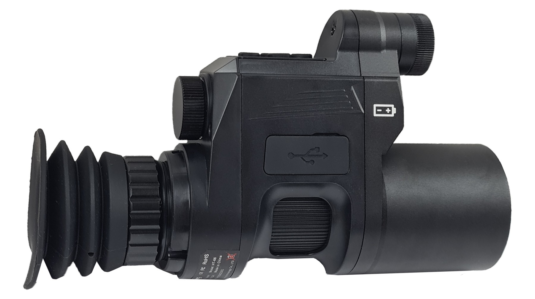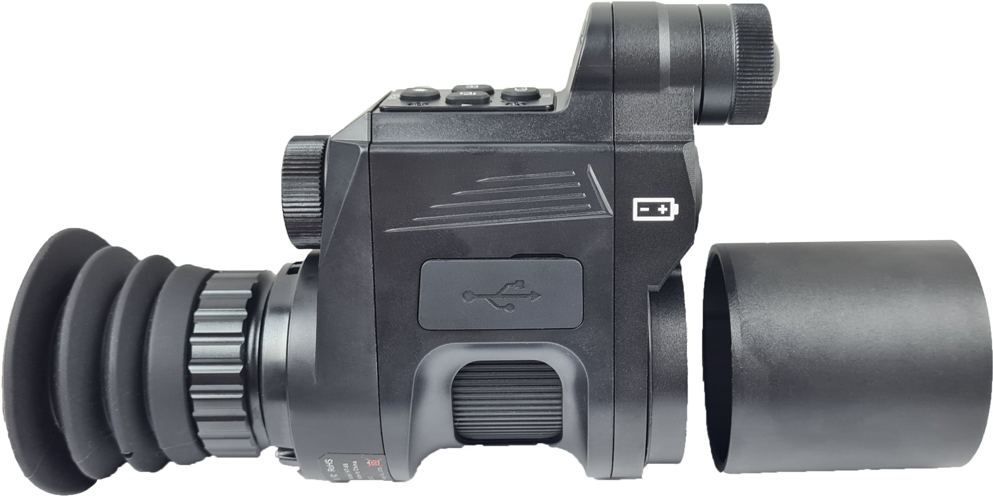 - Es kann gleichzeitig als Beobachtungsgerät (Monokular) und als Nachtsicht-Aufsatzgerät (Nachsatzgerät) für das Fernglas, Spektiv oder ähnlich verwendet werden
