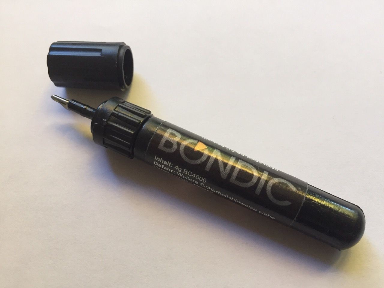Mit Bondic können Bruchstellen in Sekunden ausgefüllt und unter UV-Licht ausgehärtet werde. Danach einfach z.B. mit Schleifmaterial bearbeiten und in die gewünschte Form bringen.