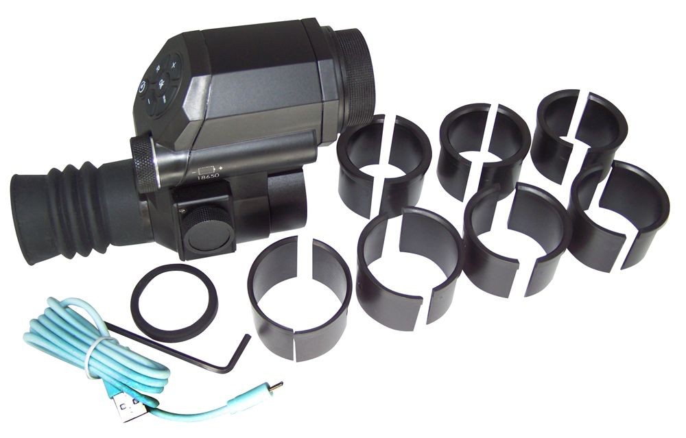 - Es kann gleichzeitig als Beobachtungsgerät (Monokular) und als Nachtsicht-Aufsatzgerät (Nachsatzgerät) für das Fernglas, Spektiv oder ähnlich verwendet werden, Verbindung mit Bajonettverschluss.