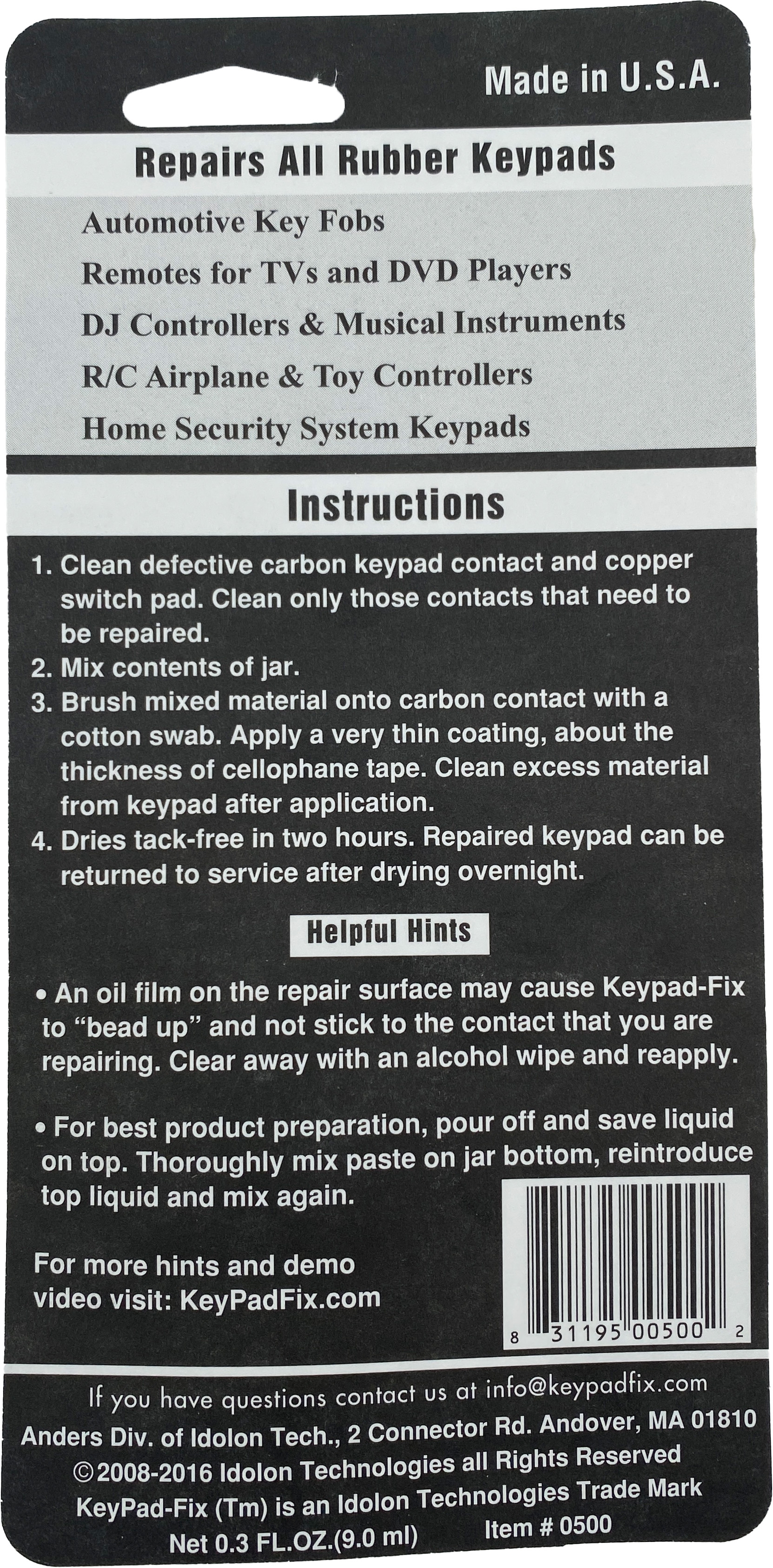 Mit einer einzigen Dose KeyPad-Fix können Sie viele elektronische Geräte im Haushalt wieder instand setzen, von klebrigen TV-Fernbedienungen, Telefontastaturen, Spielsteuerungen, Autoschlüsselanhängern und vielem mehr. Reinigt und stellt den Kontakt von Menütasten wieder her - für eine dauerhafte elektronische Verbindung.