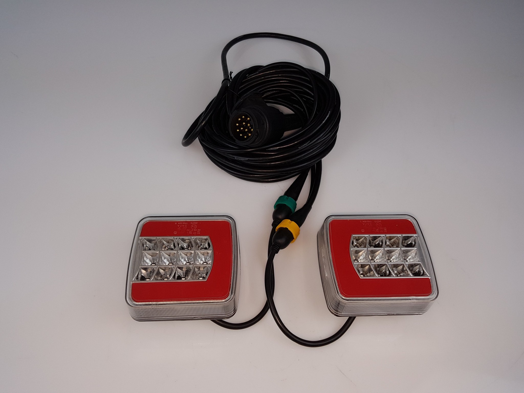 LED Glo Track 4-Funktions-Beleuchtung, Rücklicht-Bremslicht-Blinker-Kennzeichenbeleuchtung, wasserdicht verschweißtes Gehäuse in Klarglasoptik, 6 LED als Blinker, 6 LED als Bremslicht, Aussenrand Glo Track LED als Rücklicht, Nummernschildbeleuchtung seitlich. 7,5m Anschlusskabel mit 13pol. Stecker. Bajonettverschluss gelb für rechte Leuchte, grün für linke Leuchte. Angeschraubter Magnethalter an der Leuchtenrückseite. Halterdurchmesser 75mm, Haltertiefe 35mm. Gehäusemaß BxHxT ca. 103x95x37mm, Nummernschildbeleuchtung 4x2,25W, Blinker 6x1W, Rücklicht 9x0,55W, Bremslicht 6x1W, E-Prüfnummer E4 24273