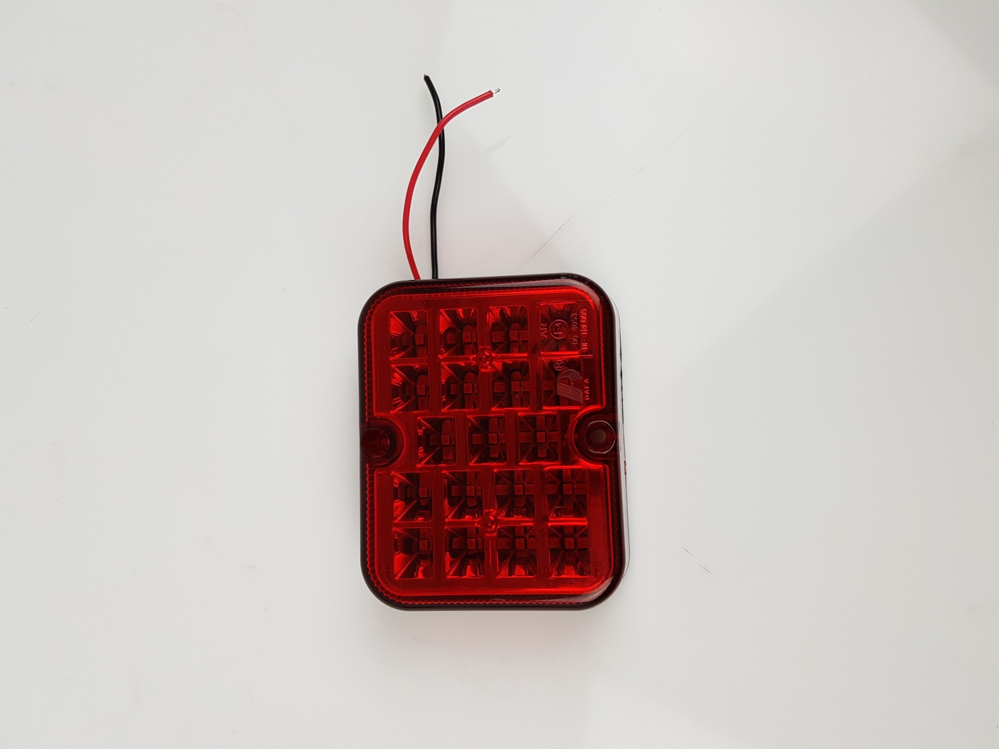 LED Nebelrückleuchte mit 19 LED's, wasserdicht verschweisstes Gehäuse, Klarglasoptik rot, Maß ca. 101x81x28 BxHxT in mm. Zur Montage an 2 vorhandenen M4 Gewindeschrauben. Lochabstand 65mm, 19x2W, E-Prüfnummer : E38R-004053
