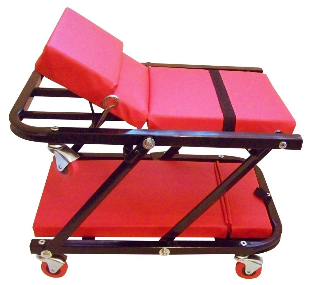 Montagerollbrett und Rollsitz 2in1, hochwertige Profi-Ausführung mit 3 Trägern für bequemes Arbeiten unter oder am Auto. Die stabile Rahmenkonstruktio