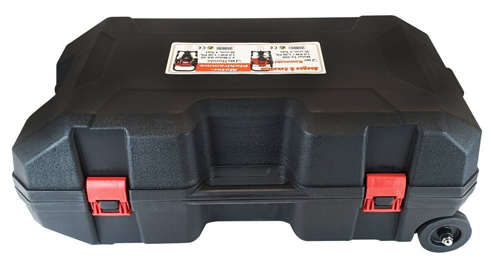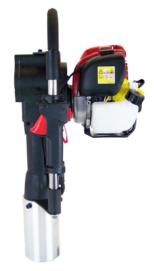 Motor-Pfahlramme, mit Honda Motor, 1,47 KW / 2,0 PS, 47,9 ccm, 4 Takt, 7000 U/min, Pfähle bis 10 cm Durchmesser fasst wie von selbst einschlagen mit 820 bis 1200 Schlägen pro Minute! Einschlagenergie 25 bis 50 J. Tank ca. 0,63L. Pfähle mit einem Durchmesser von 10 bis 12 cm können mit dem zusätzlichen Adapter (nicht im Lieferumfang) eingeschlagen werden. Gewicht ca. 18,5 kg, Maße ca. LxBxH = 73x38,9x29cm. Die Pfahlramme wird geliefert in einem robusten schwarzen Transportkoffer mit Griff und Rollen.