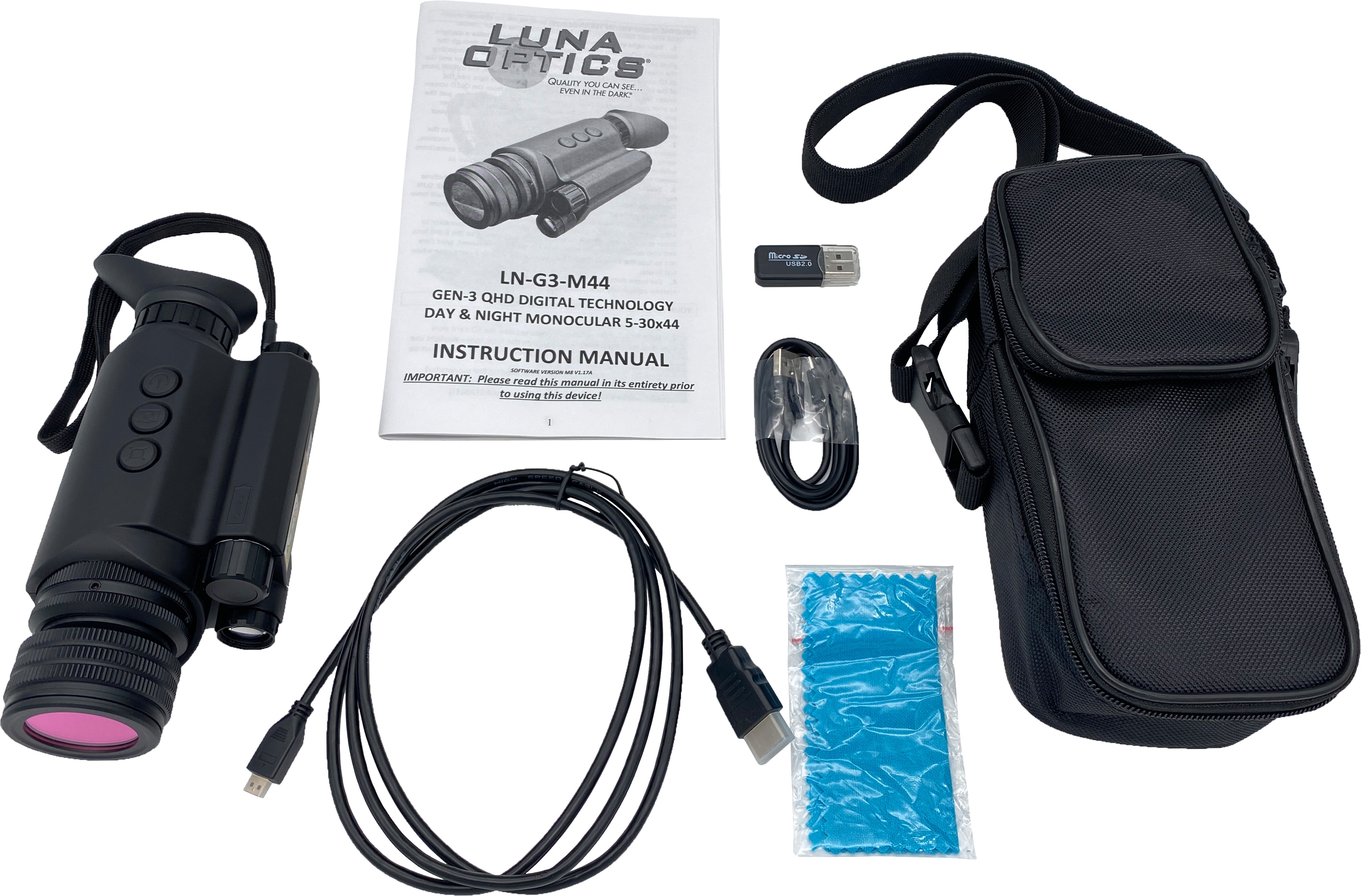 Das LN-G3-M44 bietet alle wichtigen und notwendigen Funktionen für Outdoor-Fans des 21. Jahrhunderts und wird eine nützliche Ergänzung zu Ihrem Arsenal für Jagd-, Vogelbeobachtungs-, Suchabenteuer sein. Um diese Aufgaben zu meistern, verfügt das Gerät über einen leistungsfähigen Quad-HD-CMOS-Bildsensor, ein Breitbild-HD-AMOLED-Q-Display, Wi-Fi-Streaming-Funktion, reichlich 128 GB verfügbare Speicherkapazität, IR-Strahler und Vollglasoptik. Mit seinen Verbesserungen können Sie hochauflösende 16,12-MP-Standbilder und 1440p-QHD-Videos mit einer Geschwindigkeit von bis zu 60 Bildern pro Sekunde aufnehmen. Neben der Anzeige in Vollfarbe, Schwarzweiß, NVD-Grün/Weiß-Phosphor und Bernstein-Farbmodi oder dem Speichern und Streamen von Daten auf Ihrem Mobilgerät können Sie auch eine Verbindung zu einem HD-Fernseher oder einem Videorecorder herstellen. Um Klarheit und Details zu gewährleisten, besteht das 44-mm-Objektiv aus optischem Glas. Um eine bessere Nachtsicht und größere Reichweiten zu gewährleisten, verfügt das Monokular über einen integrierten 750-mW-IR-Strahler. Egal, ob Sie eine heiße Wüste besuchen oder in den Norden reisen möchten, dieses temperatur- und wetterbeständige Monokular bietet eine gute Leistung und ist gleichzeitig ergonomisch und rutschfest zu handhaben. Zur Montage auf Stativen bietet es außerdem integrierte 1/40-Zoll-20-Buchsen. Ebenfalls im Lieferumfang enthalten sind ein Tageslicht-Farbverstärkungsfilter, zwei CR123A-Batterien, eine Tragetasche, eine 16 GB große microSD-Speicherkarte mit Adapter sowie Micro-HDMI- und Micro-USB-Kabel.