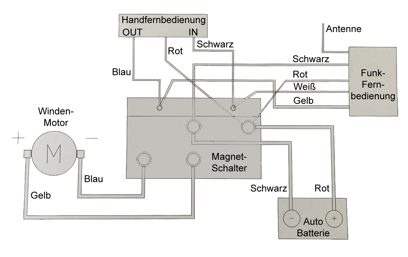 Wichtig: Das Seil nie ganz abrollen, nur bis zur roten Markierung auf dem Seil! 3-fach Planetengetriebe und Alu-Seilfenster.