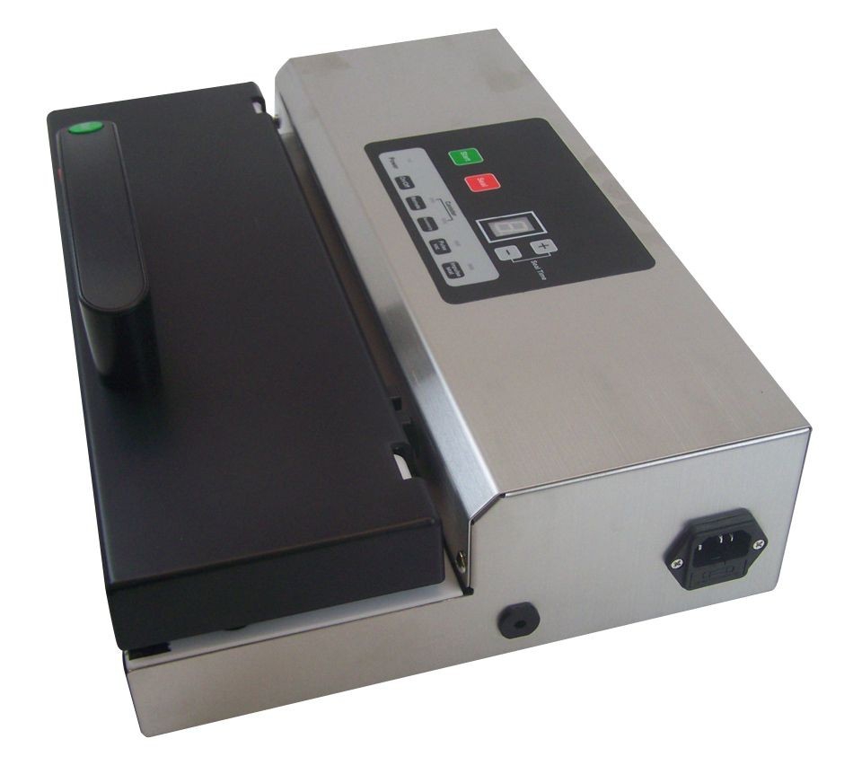 Vakuumverpackungsgerät für Wildbret, das erlegte Wild wird so lange haltbar gemacht. Kein Gefrierbrand, vor dem Schweissvorgang wird die Luft aus dem Folienbeutel abgesaugt. Eine 5 mm breite und übergangslose Schweissnaht sorgt für einen zuverlässigen Verschluß des Beutels. Mit Schweißzeitanzeige, für Folienbeutel von 150 bis 300 mm Breite, 230 V, 700 W, Pumpenleistung ca. 16 l/min, max. 0,931 bar Vakuum, passende Vakkuumbeutel, je 100 Stck. Packung:Art.Nr.30200 bis 30205.