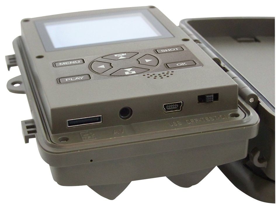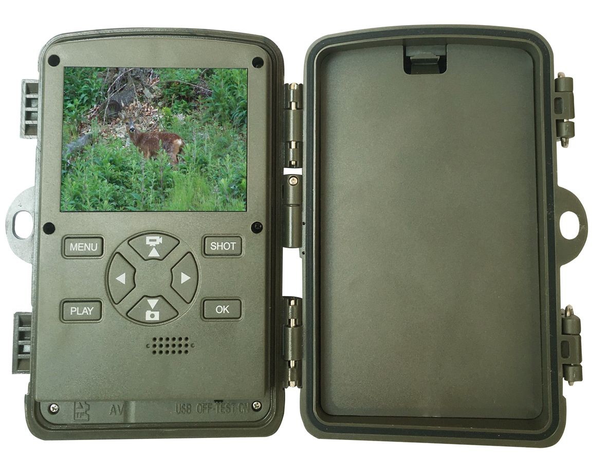 Wifi 4K Full HD Wildkamera, Wifi Funktion per app - einfach die Bilder auf das Smartphone in einem Abstand von 5 bis 6 m downloaden ohne lästiges Klettern oder TF Kartentausch, 940nm BLACK-LED's (2 Stck. high power), 20 Mega-Pixel (auch 16MP, 12 MP, 8 MP, 5 MP, 3 MP, 1MP einstellbar) bei 8MP CMOS sensor, mit 2,4'' TFT Bildschirm (720x320), 24-Stunden rund um die Uhr Bilder und Videos. Bei Tag in Farbe und in der Nacht durch 2 high power 940nm Black-LED's (Blitzreichweite ca. 20 m) in schwarz/weiß; Technische Daten: Trigger Time nur 0,3 sec (bei 4GB TF Karte), Objektivbrennweite 3,3, 105° Objektiv; Automatischer Weißabgleich, Kartenschacht für TF Karten bis 128 GB! (nicht im Lieferumfang), 1,2,3,6 oder 10 Bilder oder 1 Bild + Video pro Auslösung einstellbar (Videolänge 3 sec. bis 10 min. wählbar). Videos mit Tonaufnahme von 3840x2160/10fps, 2688x1520/20fps, 1920x1080/30fps, 1280x720/60fps, 720x480/30fps, 640x480/30fps, 320x240/30fps einstellbar, Zeitraffer. Datum, Uhrzeit, Mondphase, auf jedem Bild. Timer-Einstellung möglich. 3 Stück PIR Bewegungsmelder (Intensität einstellbar) davon 2 Vor-PIR's (120° Registrierungswinkel) für quer verlaufende Wechsel, können auch ausgeschaltet werden, Haupt-PIR mit 60° Registrierungswinkel, Playback Zoom 1 bis 14fach, Diashowfunktion in der Bildauswahl, Passwortschutz, Betrieb je nach standby Zeit über 4 bis 8 Stück Alkali Mignon Batterien (AA, nicht im Lieferumfang) wetterfestes Gehäuse IP54, USB Kabel für Anschluß zur Bildübertragung auf Ihren PC, Gurtband für Baumbefestigung und Wandmontagehalterung. extrem kleine Maße ca. LxBxH = 130x90x75 mm inkl. Batteriebox, mehrsprachige Menuführung D, GB, DK, FI, S, F, E, I,P,NL
