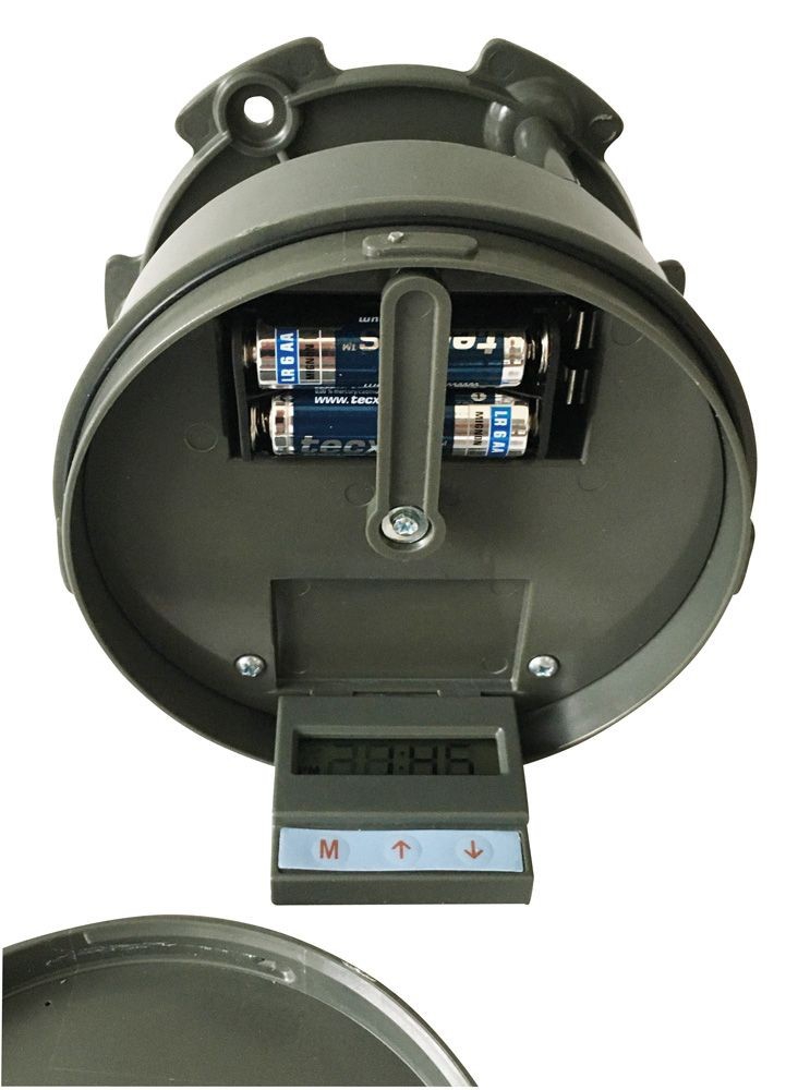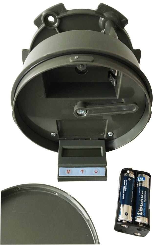 Produktinformationen "Wild-Futter-Streuautomat Dual, über Digital-Uhr gesteuert, Verteilung (1 bis 4 mal pro Tag) frei programmierbar, Futtermenge (1 bis20 sec. je"