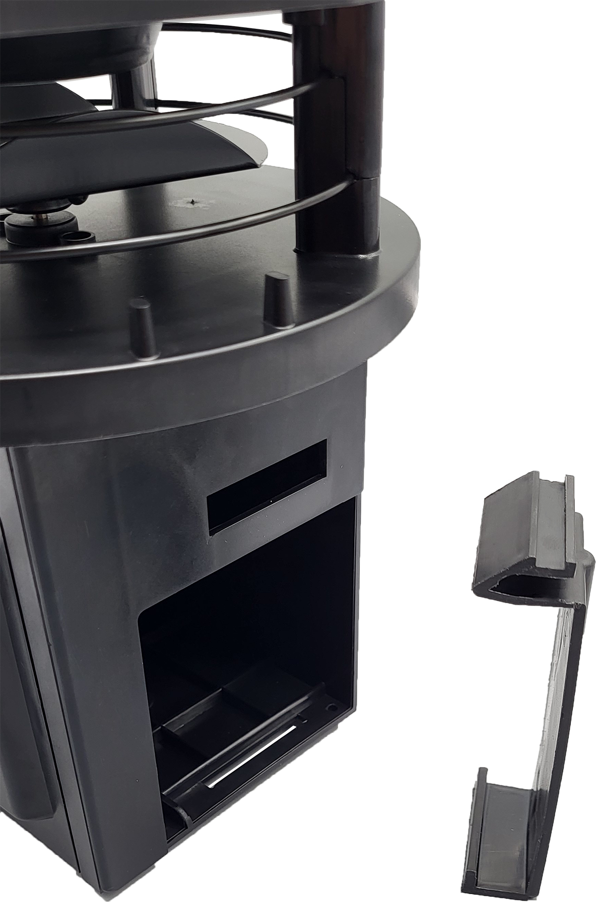 - Der Futterbehälter wird einfach auf dem Gerät montiert (nicht im Lieferumfang)
