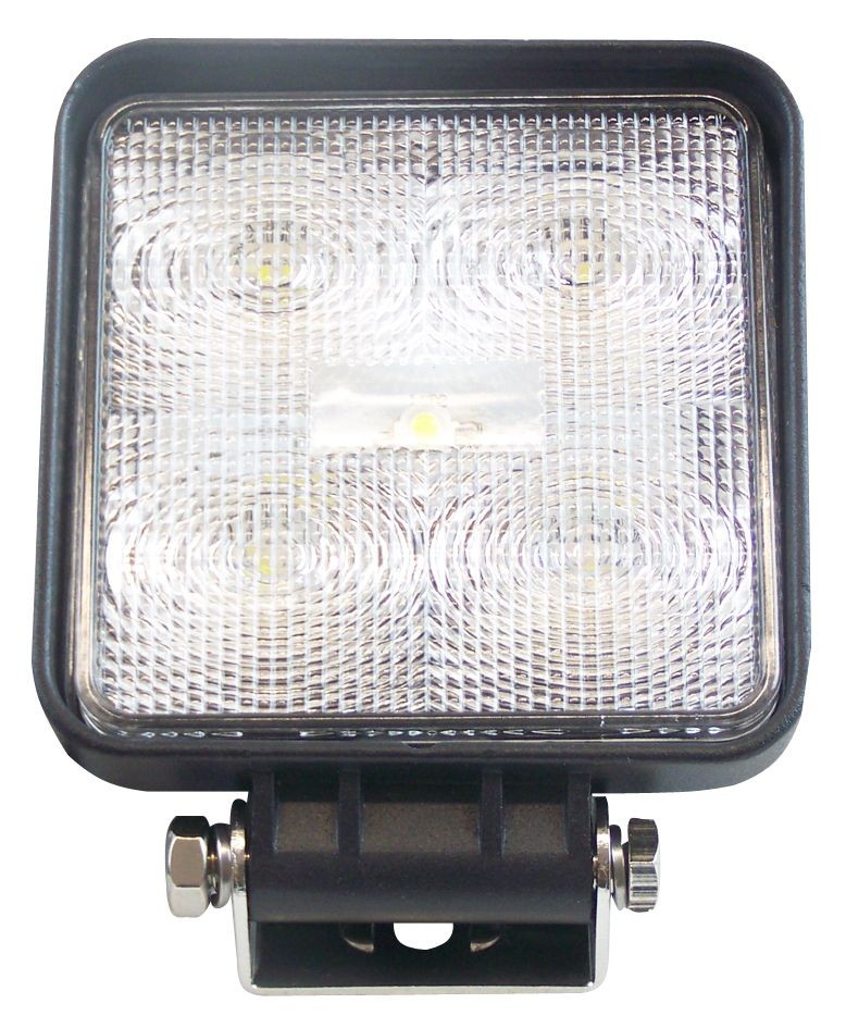 LED work light, 5x3 W, about 900 lumens, aluminum housing, polycarbonate glass, Specifications: Light source: 5 x high-power LED, Power: 15 watts (5 x 3W), voltage: 9-32 volt, class: IP67, Dimensions (WxHxD): 110 x 110 x 41 mm, LED life: 30,000 hours, short-range dispersion lens (short and wide), no e-sign, no use on the road.