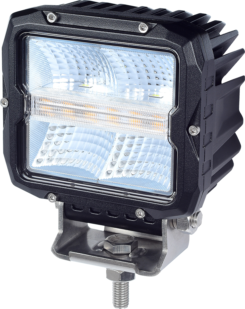 High-quality aluminium housing, 4 pcs. White light LED's 60 W 5000 lumen, 6 pcs. orange light LED's 9W R65-certified 200 lumen, position light white 2W R148-certified 50 lumen, 12 to 24 V,