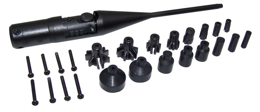 Laser Boresighter, for quick and accurate shot test, for setting and reviewing the impact point, visible laser dot over 100 m. Incl. caliber stake .177 (4,5 mm) to .50 (12.7 mm), caliber stake tops are conical, they fit really well in all rifle (each caliber stake fits for multiple diameter) without damaging them . Battery operated incl 3x LR44 button cells. Class 3R laser, 650 nm, <5mW.